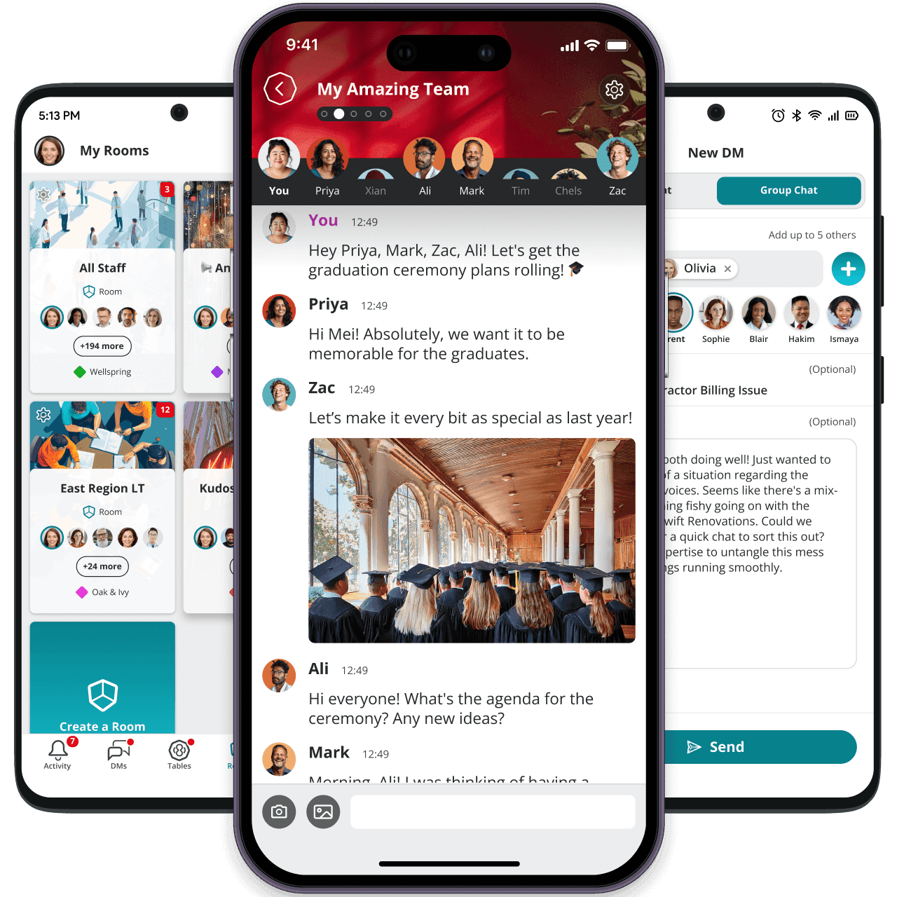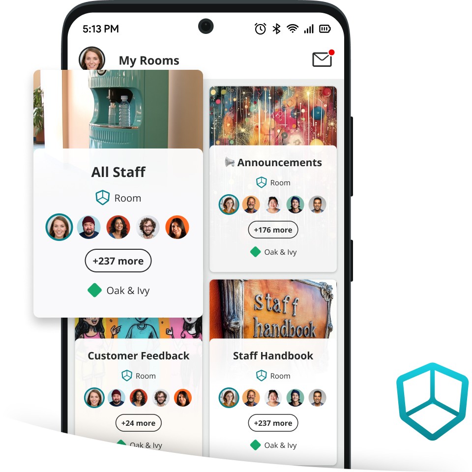 Built specifically for businesses with frontline workers, Rooms allow you to broadcast messages, share updates, and coordinate tasks directly to your team’s smartphones.