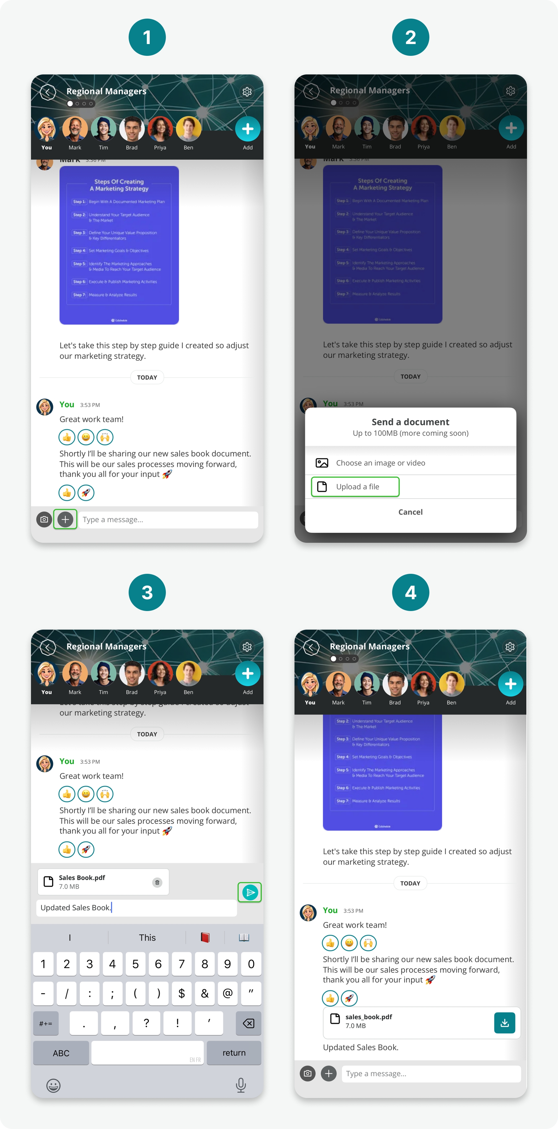 Tip: On 8seats Web you can drag 'n' drop up to 10 files into the composer bar before sending.