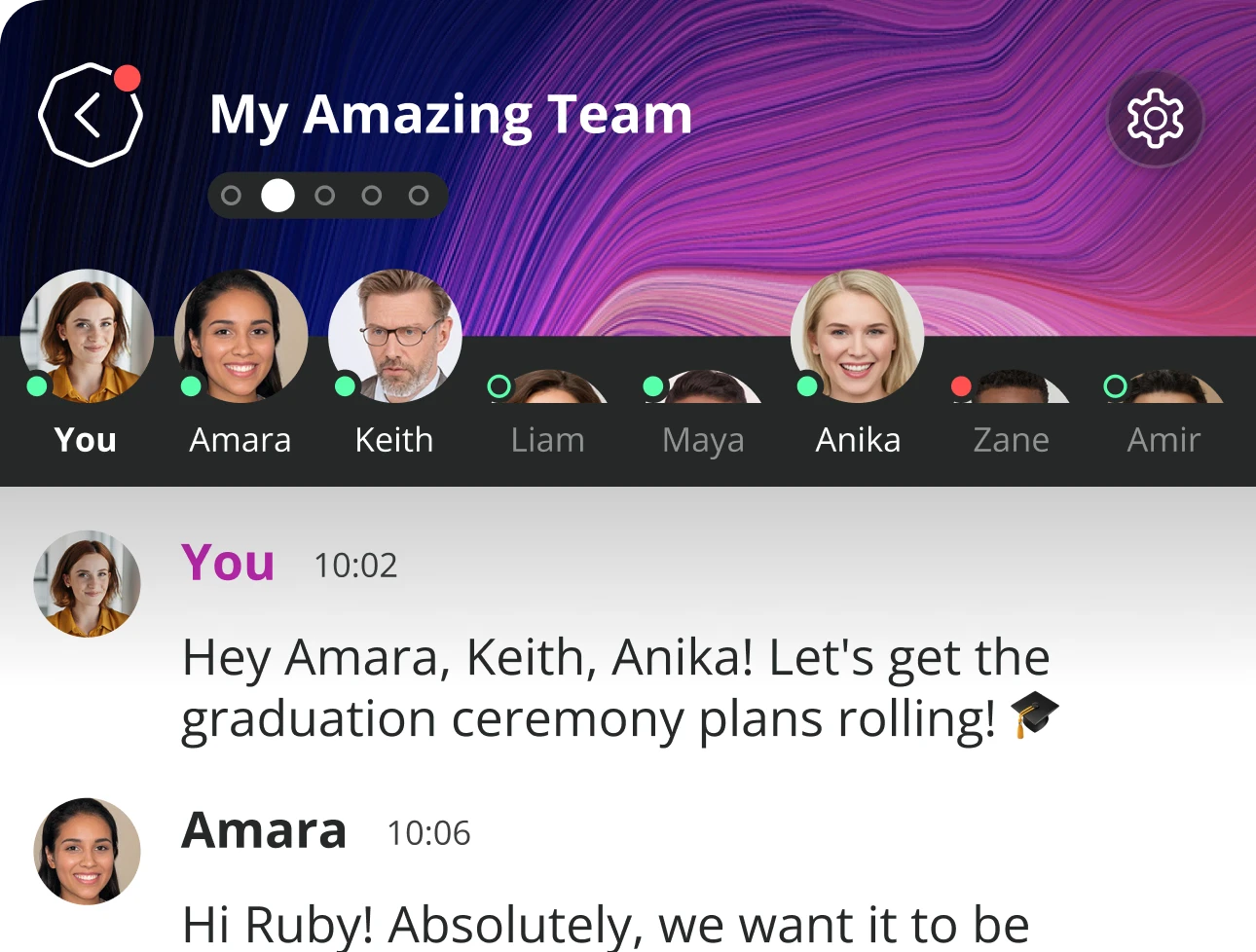 Natural conversations for small and effective teams of up to 20 people. Connect and collaborate faster, powered by our unique dynamic chat system.
