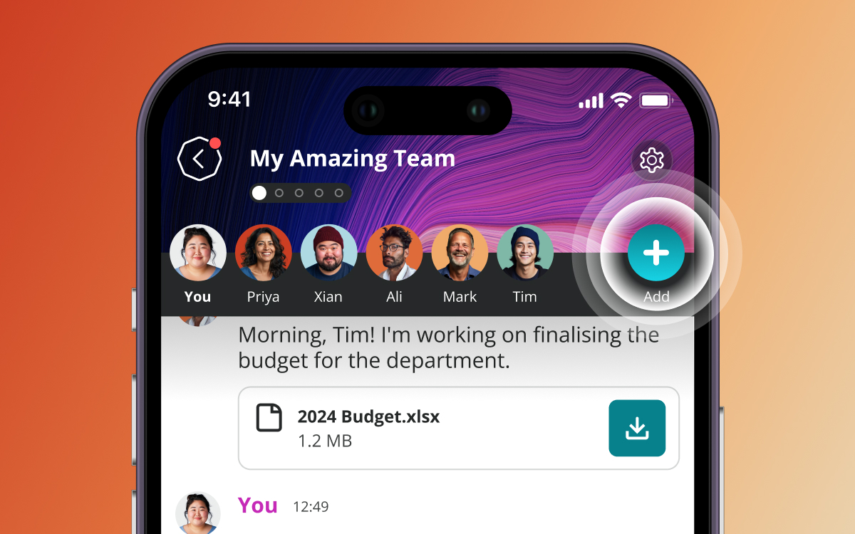 Invite other people to your Table by tapping the + button. You can have up to 8 people on your Table, including yourself – or even up to 20 on the 8seats Business plan. No need to worry if they don’t have 8seats yet, all you need is their phone number and we’ll invite them to join you on your Table.
